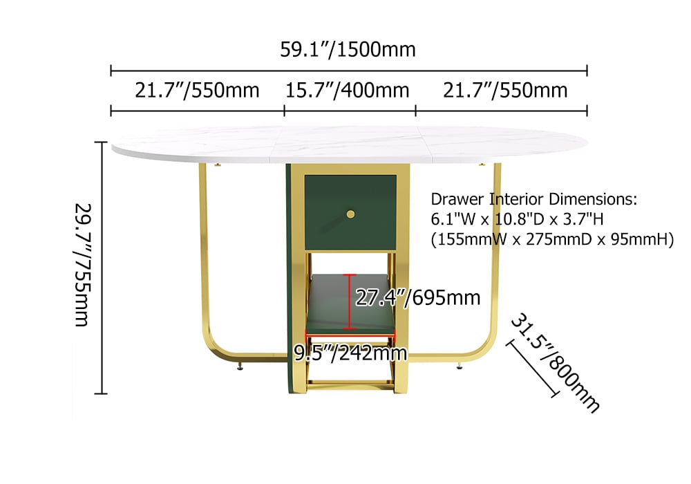 59.1" Modern Rectangle Leaf Folding Wood Dining Table with Storage Seats 4-6 People