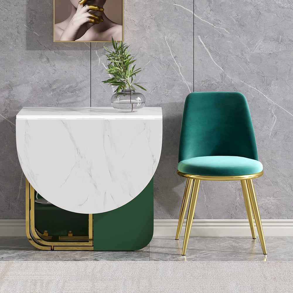 This modern dining table comes with a drop leaf for extended seating. Made of durable MDF and metal, it perfectly suits small spaces.This modern dining table comes with a drop leaf for extended seating. Made of durable MDF and metal, it perfectly suits small spaces.