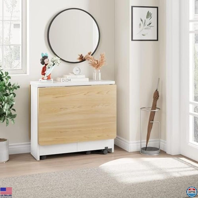 DarByma طاولة طعام قابلة للطي مع درج ورفوف تخزين من